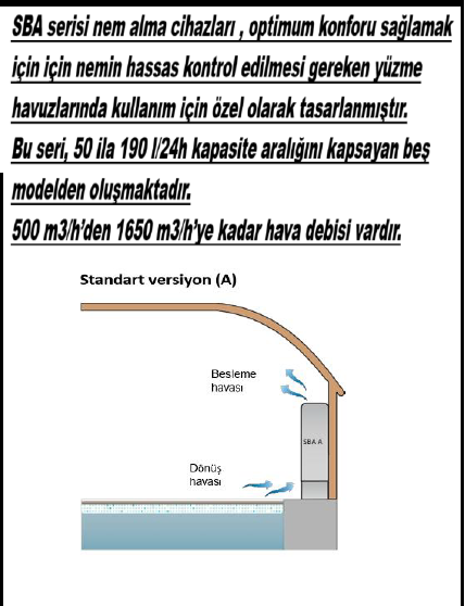 SBA serisi nem alma cihazları, optimum konforu sağlamak için nemin hassas kontrol edilmesi gerekenyüzme havuzlarında kullanım için özel olarak tasarlanmıştır.